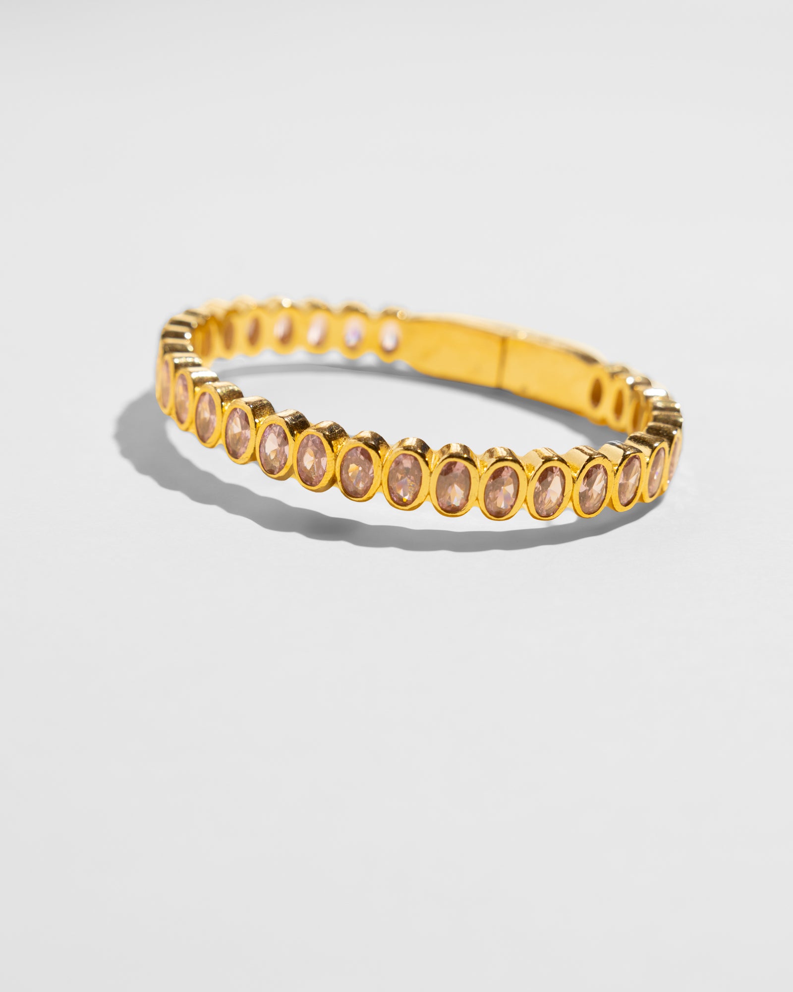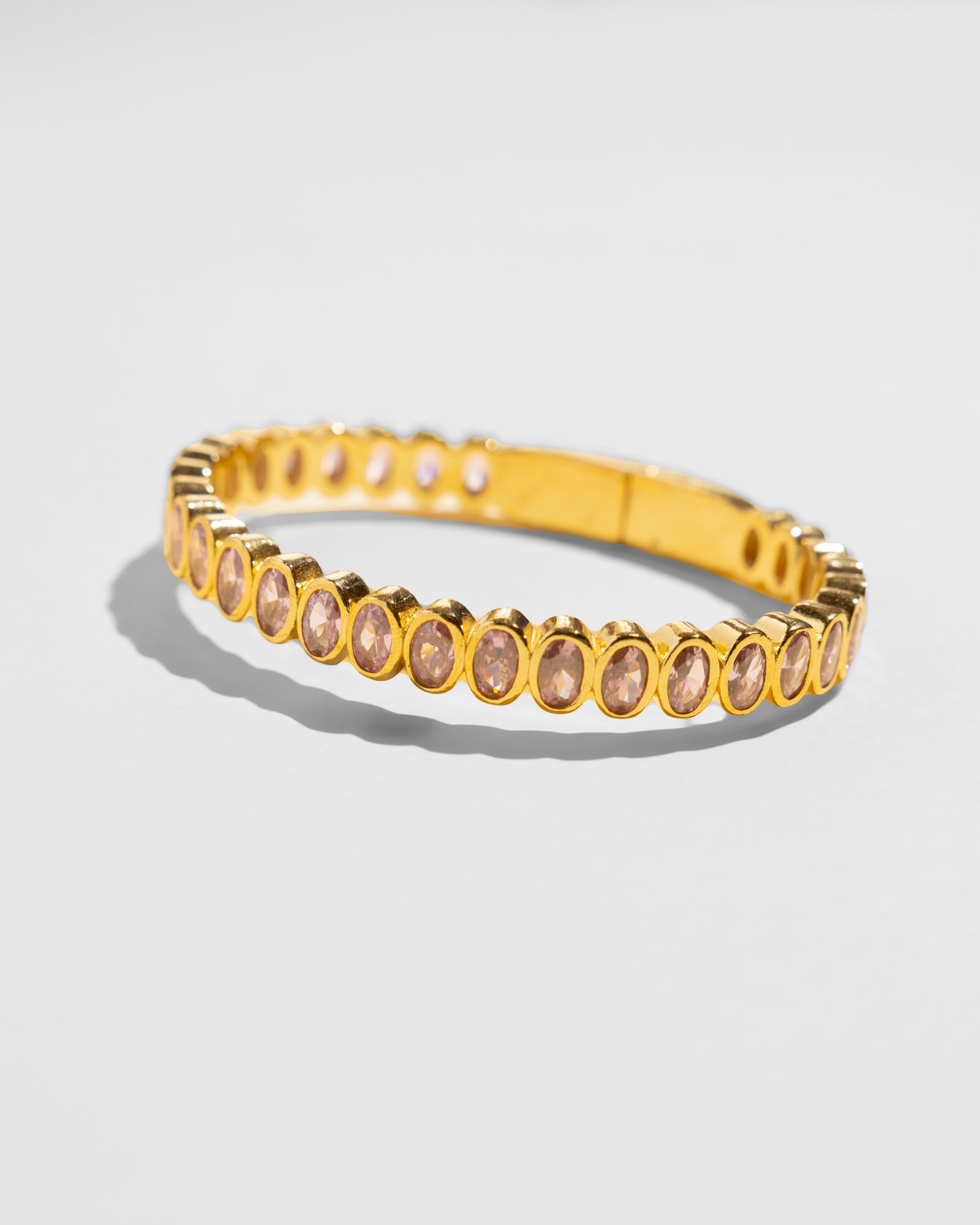 This bangle shimmers with faceted zirconia in soft pink. Slip it on and suddenly your whole look feels elevated — not fussy, just confident, with that quiet kind of elegance that speaks for itself.