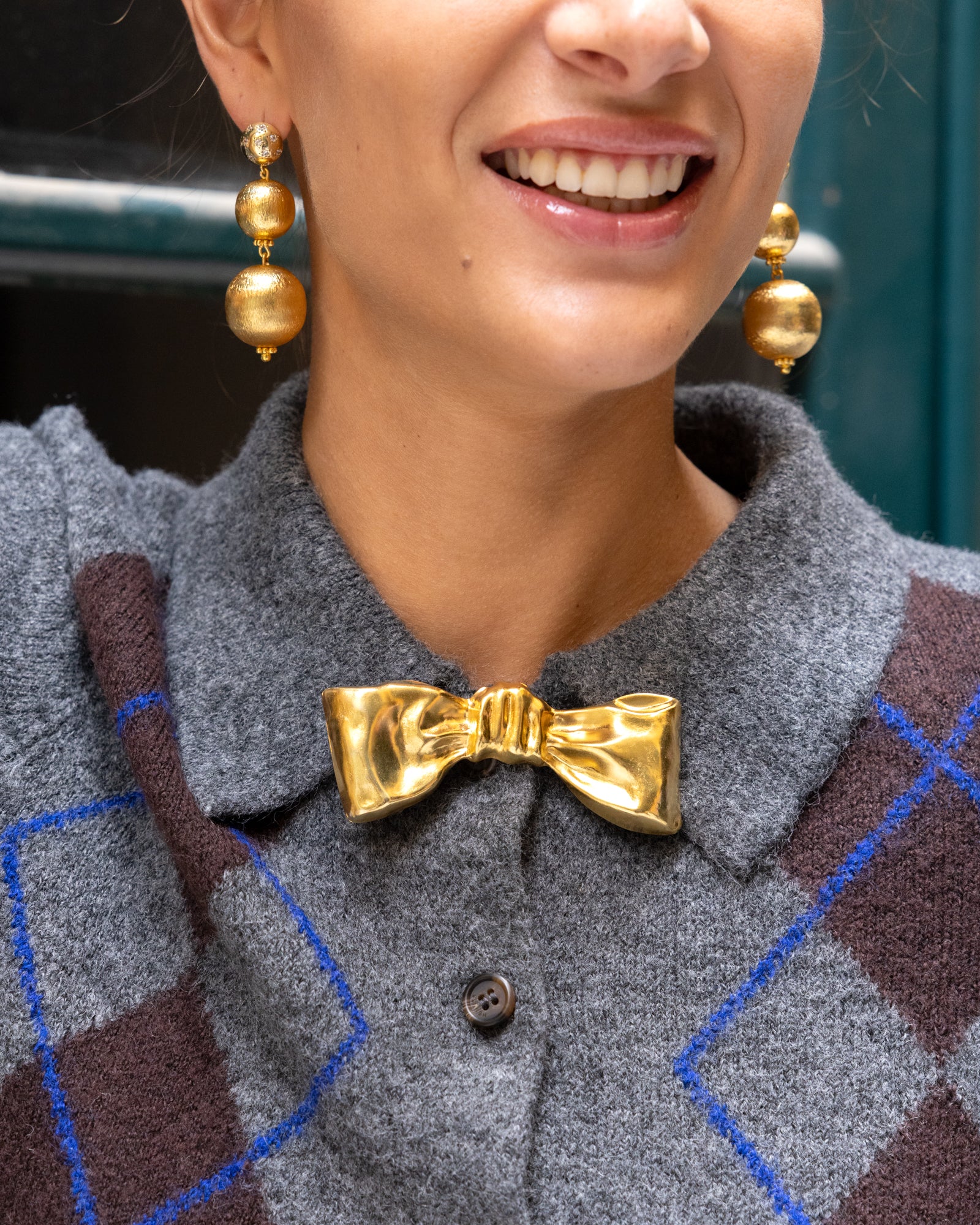 A gold-plated bow with sculptural volume and a near three-dimensional feel. It carries the charm of a feminine symbol, yet its metal form speaks of strength — a balanced play of softness and power, made to be worn with ease.