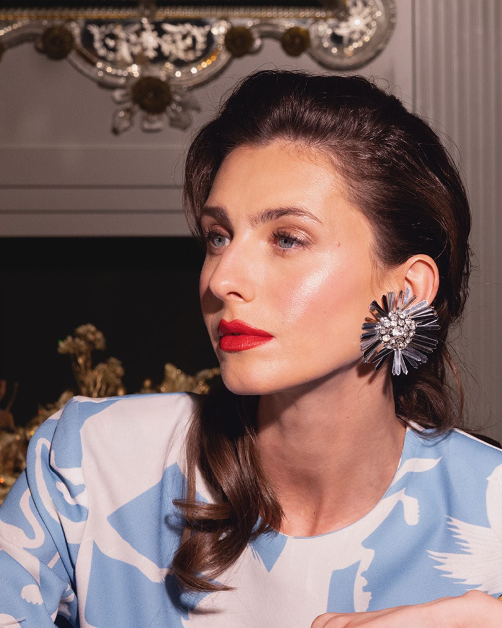 You’ll love our Didi earrings — they look like radiant flowers. These bold statement earrings combine shimmering blue sequin petals with a sparkling crystal center. And the best part? They’re clips, so you can wear them easily even without pierced ears.