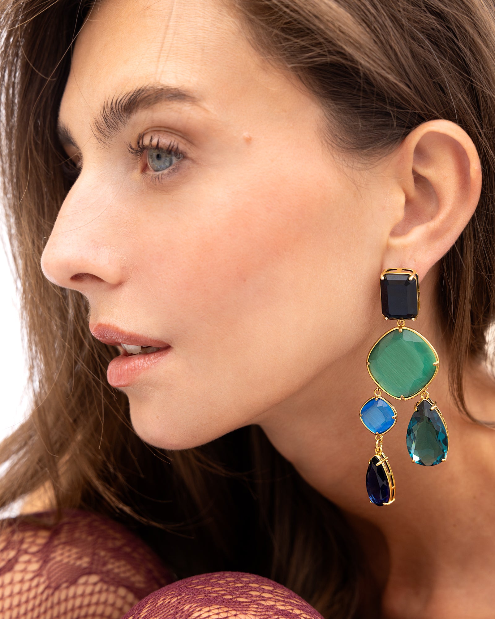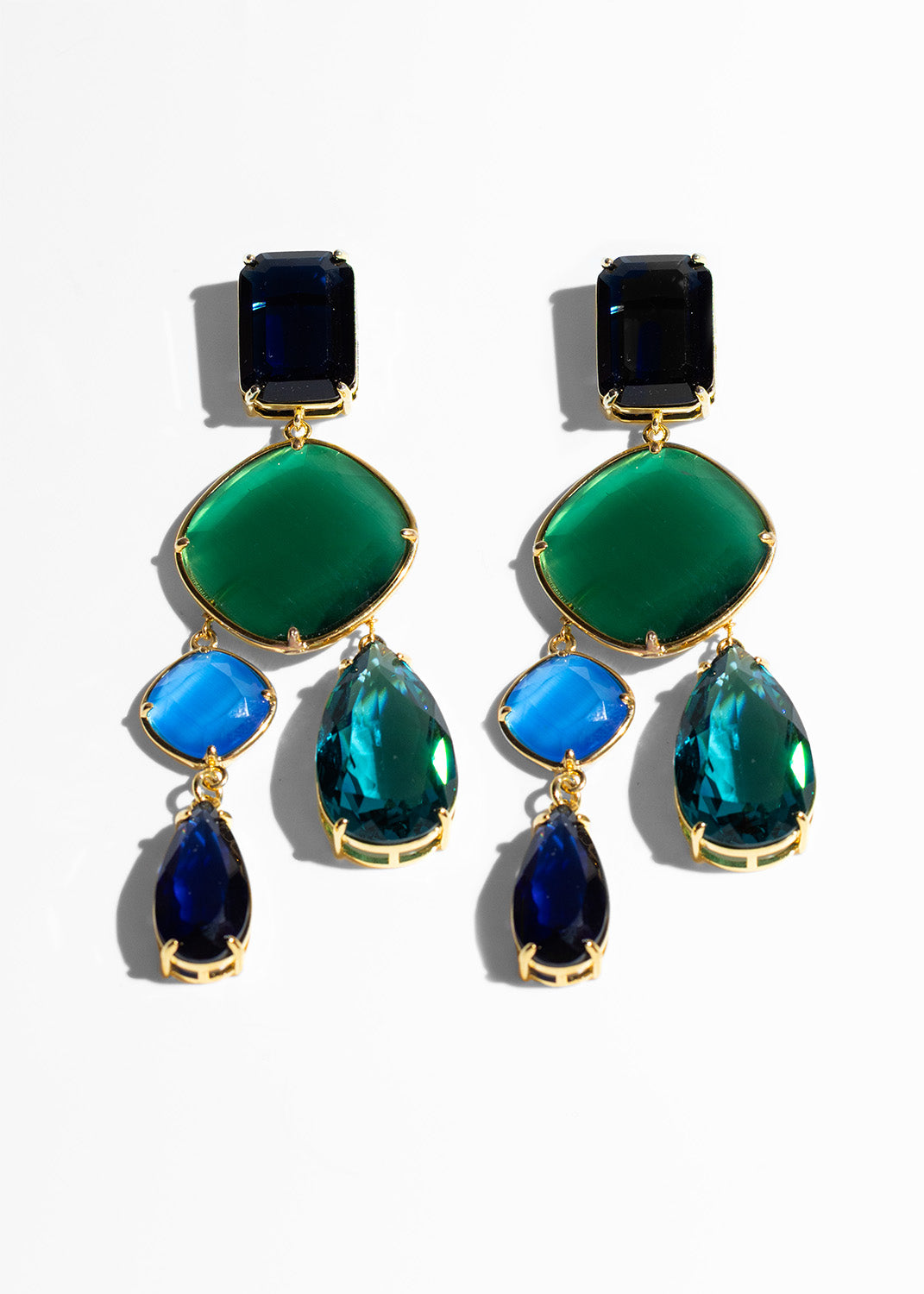 Introducing the Memphis Green Drop Earrings—a masterpiece of refined craftsmanship. These sophisticated pieces artfully combine luminous crystals, polished gemstones and rich cat's eye slabs in a graceful cascade that plays with light and shadow. Each element is thoughtfully layered to create an understated yet commanding presence that elevates any occasion. More than jewelry, they're a statement of personal elegance—the subtle accent that transforms your look into something distinctly yours.