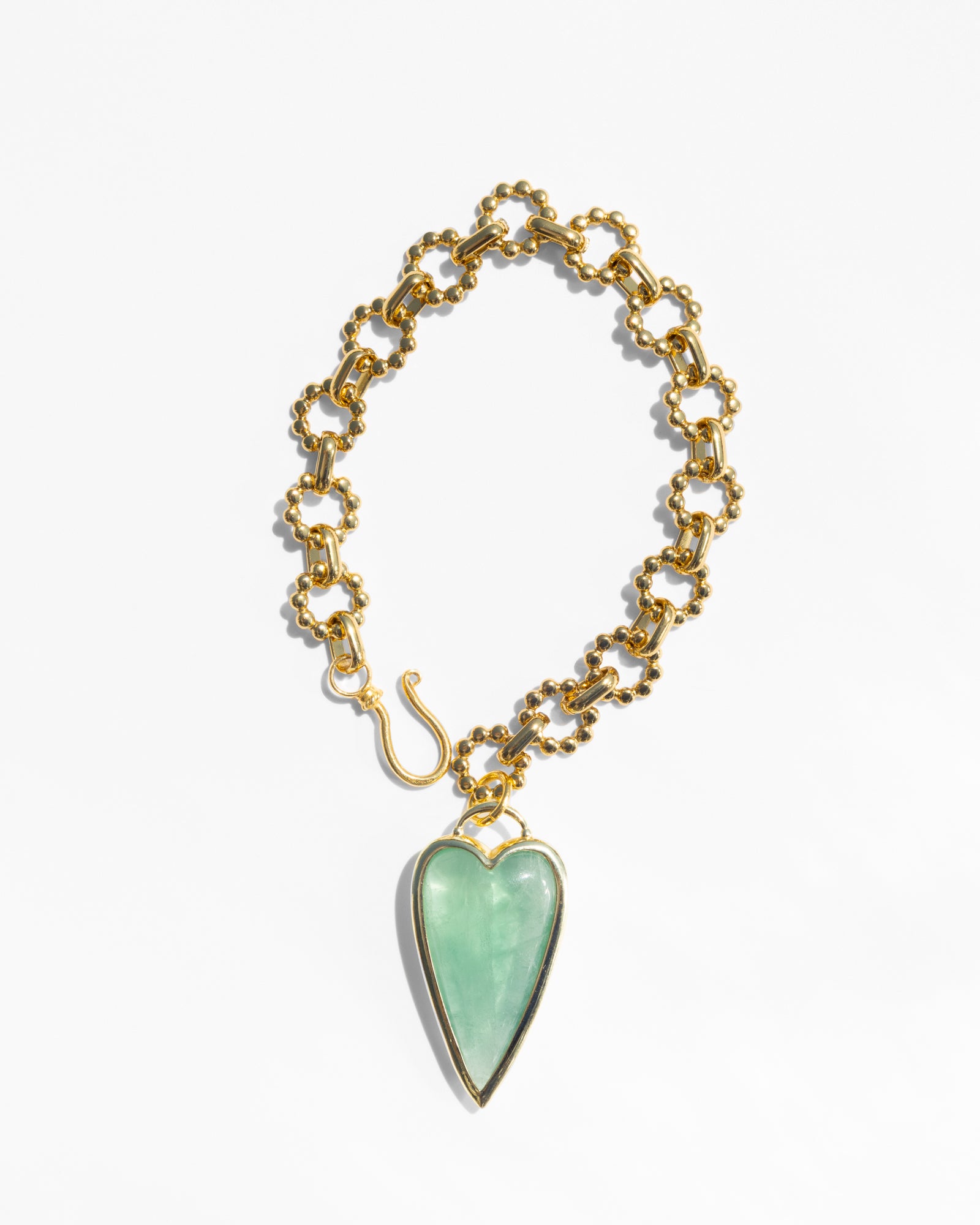 That's Amore! A heart dancing on your wrist, perfect to celebrate any new beginning. Set on a chunky gold plated chain, this polished flourite stone will complement any outfit. This bracelet stole our hearts from the very first moment! Ready to make it yours?