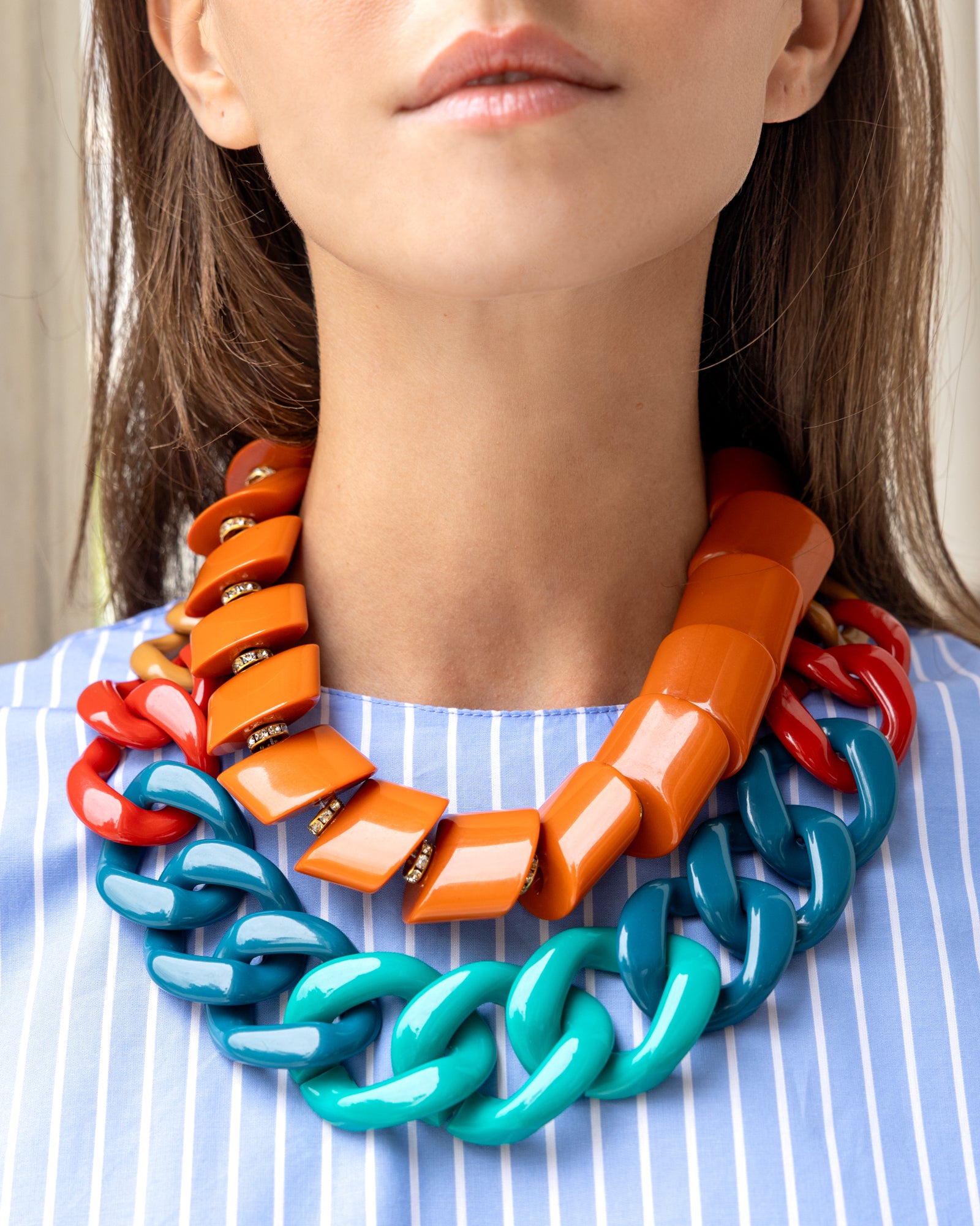 Bold links in playful hues make this necklace feel light to wear yet striking in style. Its mix of colors lets it pair effortlessly with countless looks — the perfect piece to brighten office wear and lift your everyday style.