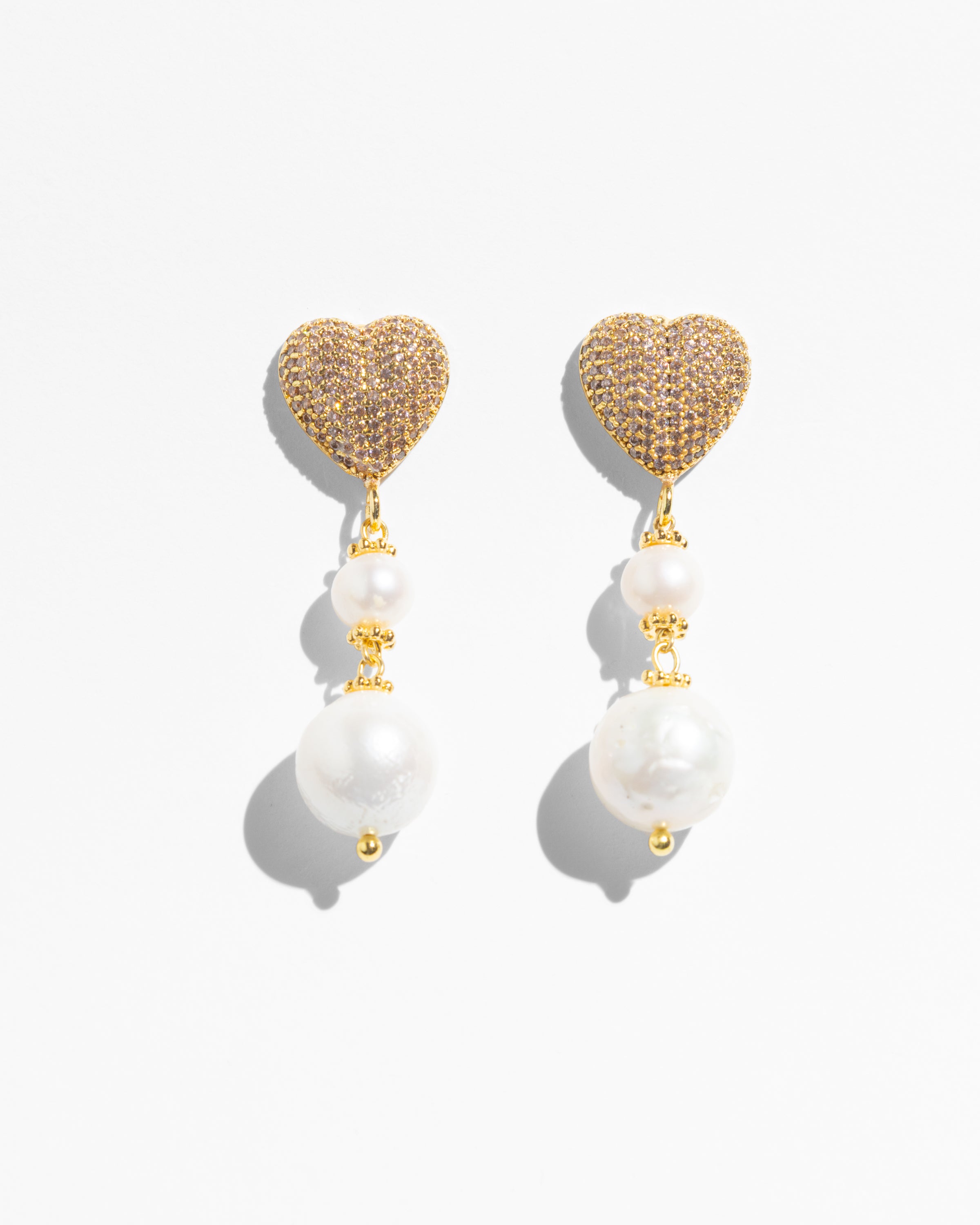 Amore White Pearl Stud Earrings present an exquisite fusion of romantic charm and modern refinement. Featuring a delicate heart-shaped design embellished with crystalline accents and pearls, these studs radiate subtle luminosity that enhances any skin tone with effortless grace. Perfect for both intimate daily moments and milestone celebrations, they offer versatile elegance.