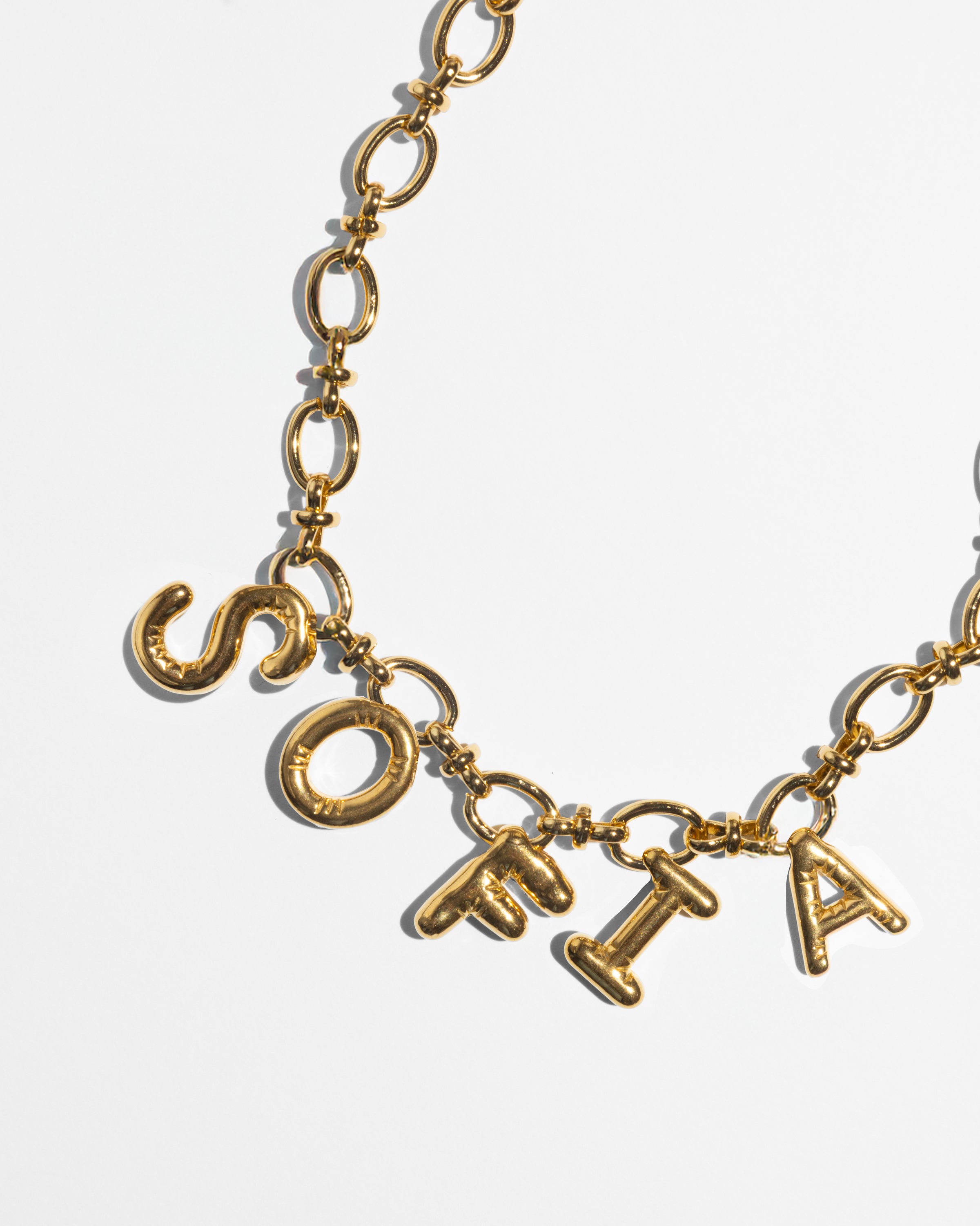 Carry your favorite word on our chain necklace. Choose initials, a word that means something to you, your name — anything you feel. As special as you!