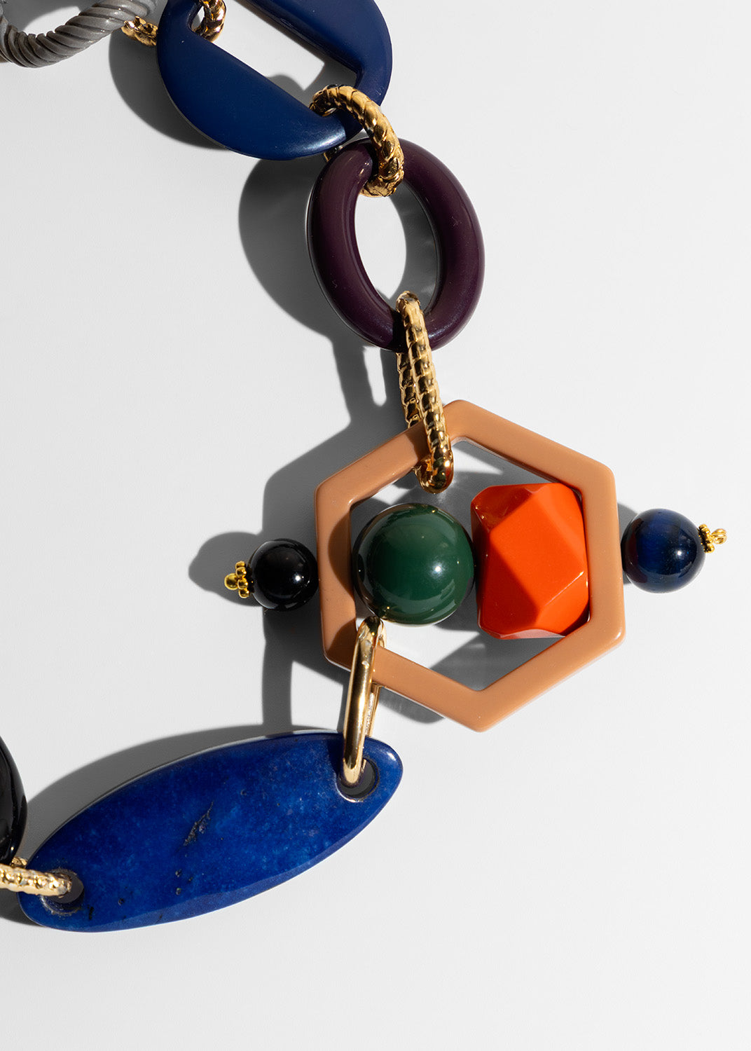 Bold acrylic links in playful hues _and vintage blue agate - make this necklace feel light to wear yet striking in style. Its mix of colors lets it pair effortlessly with countless looks — the perfect piece to brighten office wear and lift your everyday style.