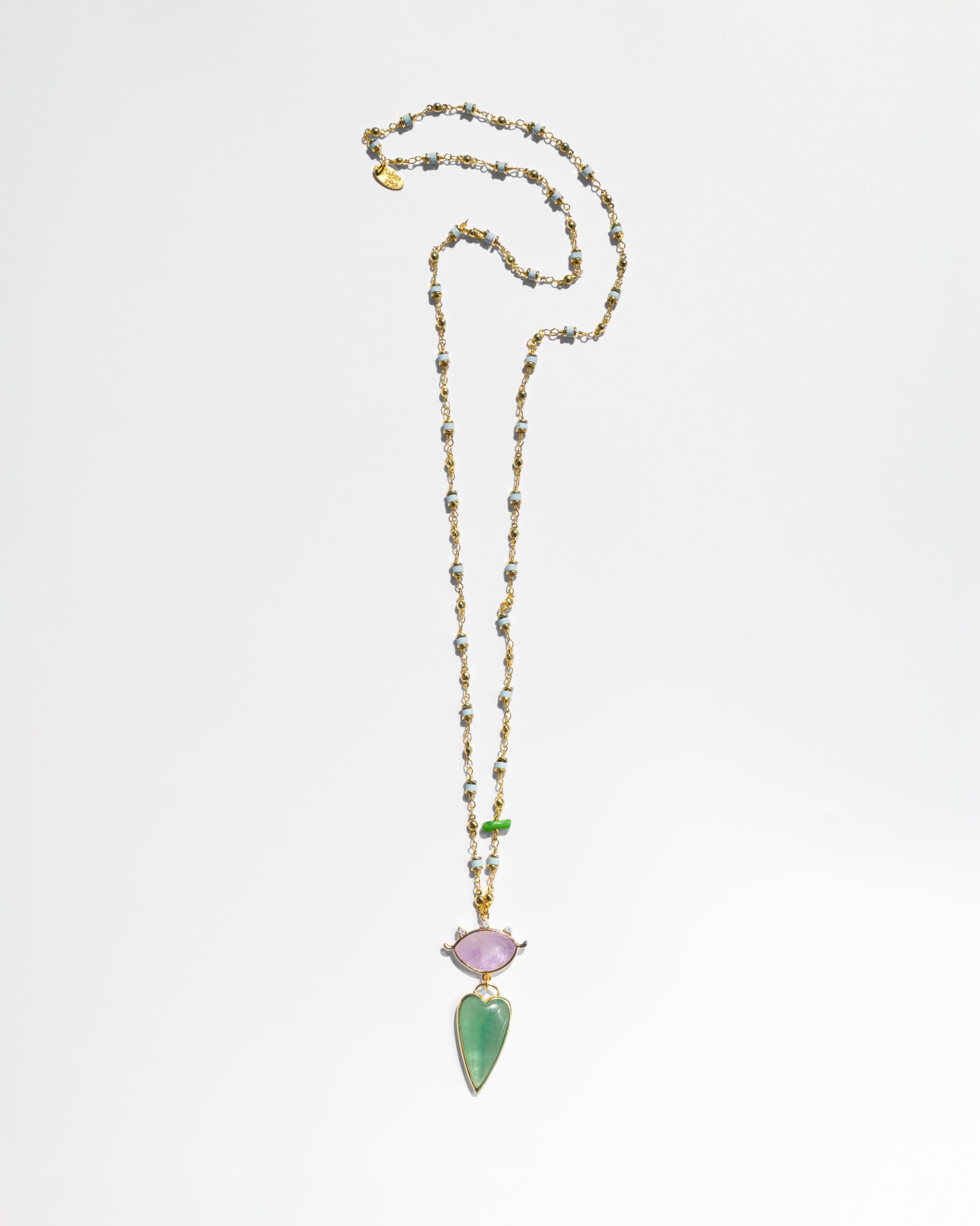 Amore Long Necklace with Green Heart