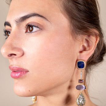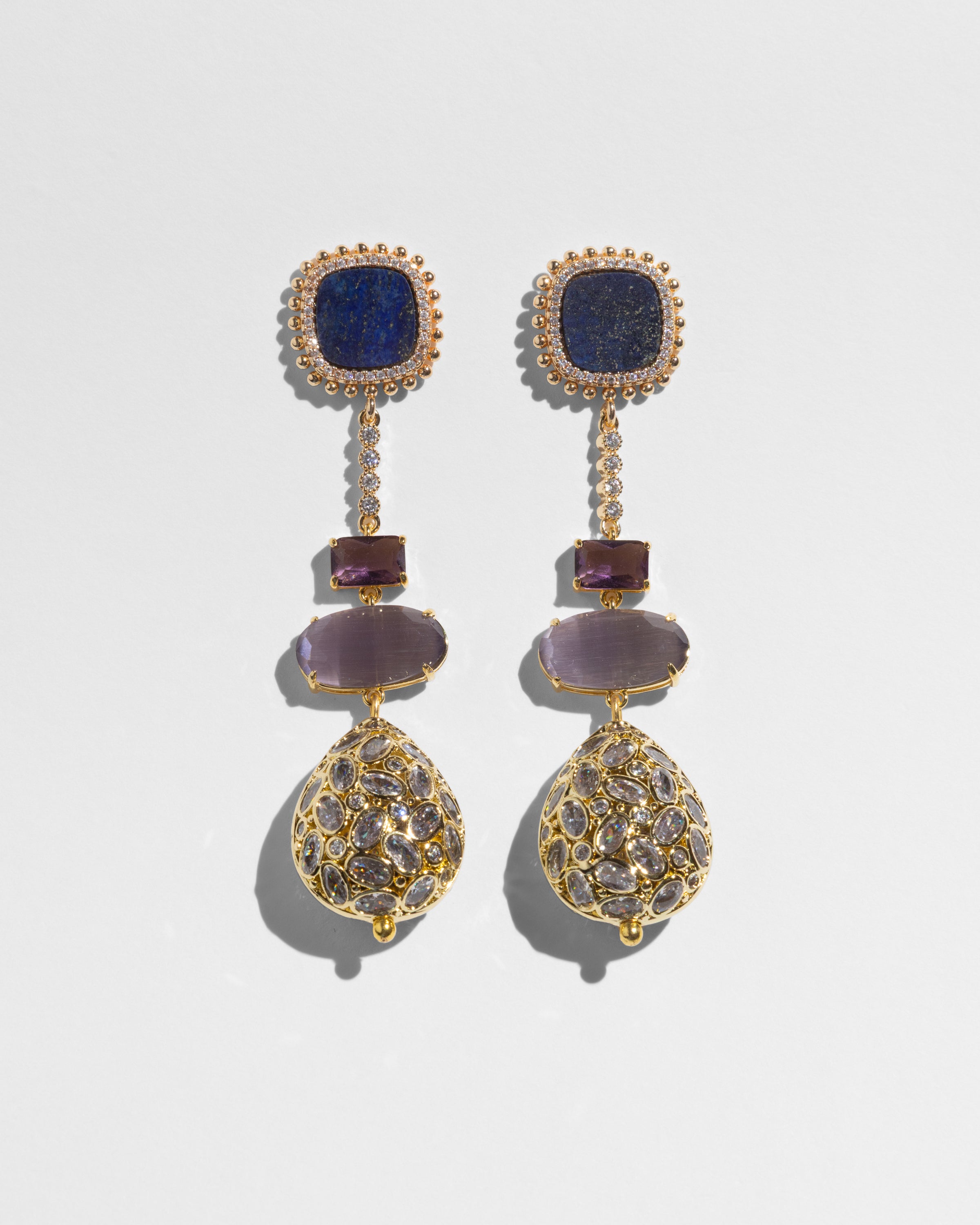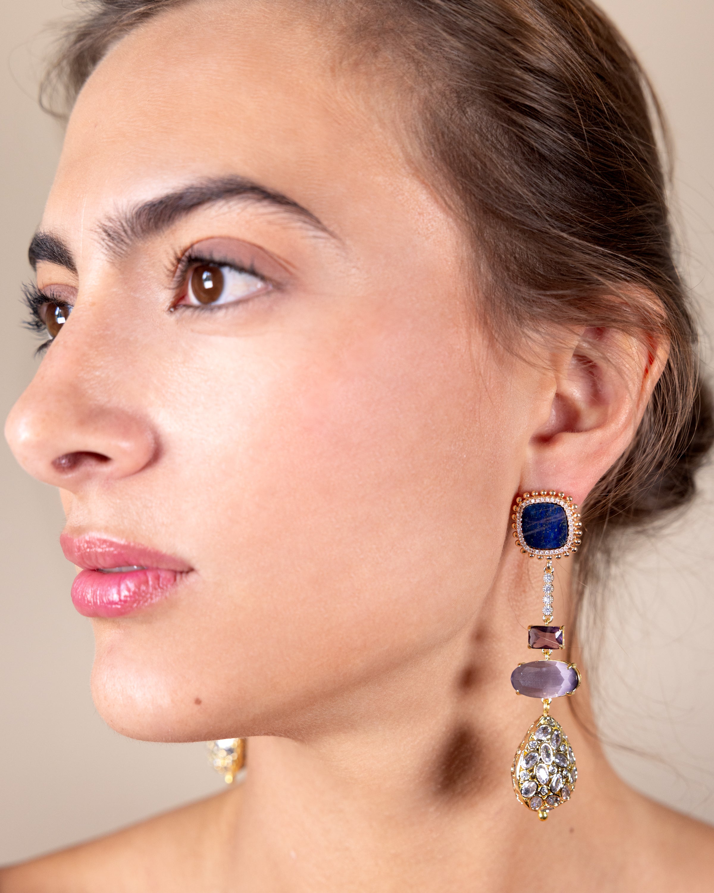 These crystal dangles are all about understated glamour —lapis lazuli studs combined with elegant crystals. They move beautifully and feel instantly polished, the kind of earrings that make even the simplest outfit look styled.