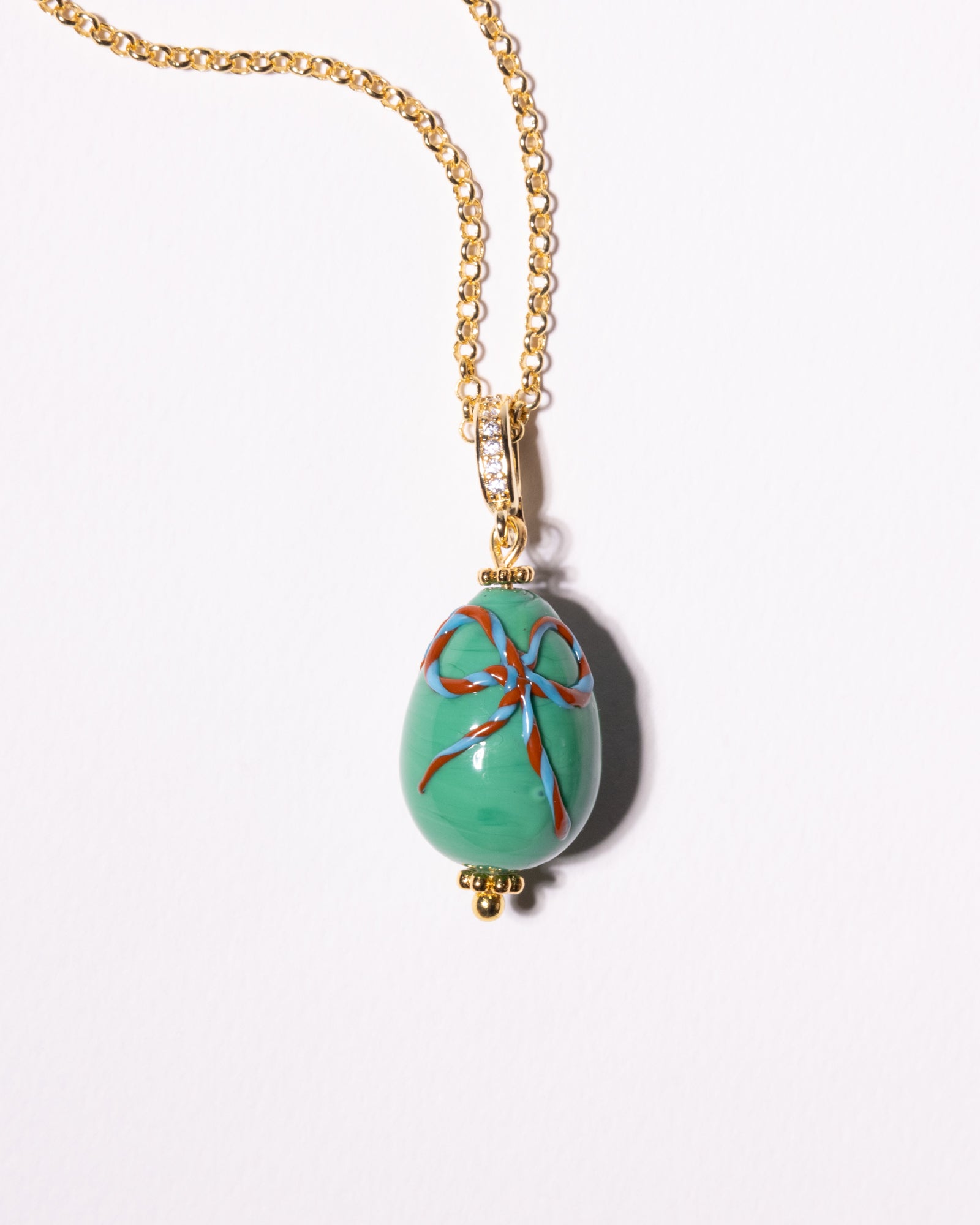 Made in Venice: our Murano eggs are made by glass masters following the "al lume" technique, which is century years old. A little "ritorto" bow made from twisted glass, in brown color adorns the polished bead. The egg pendant is set on a sparkling gold plated chain and has a clasp that allows you to remove the bead from the chain.