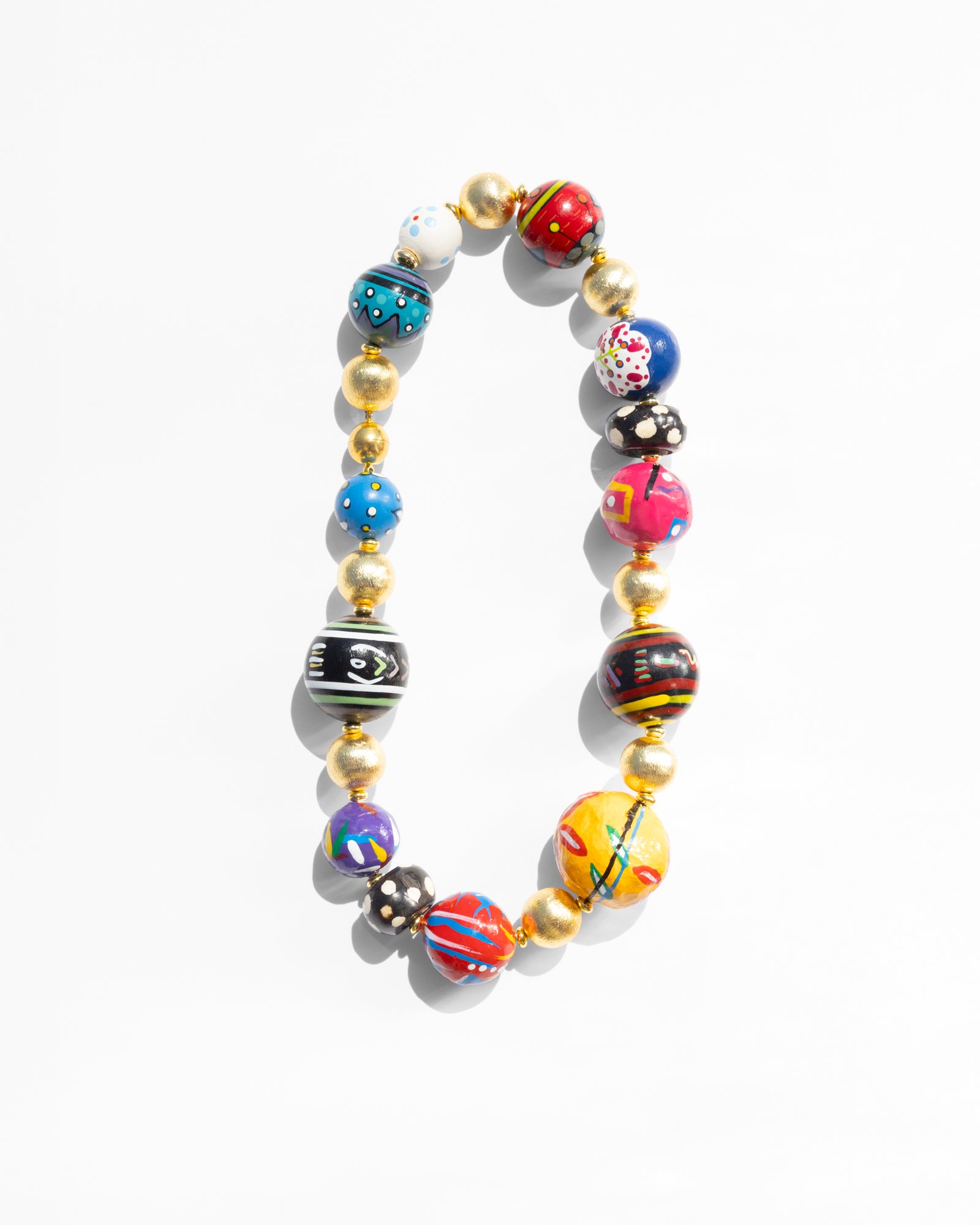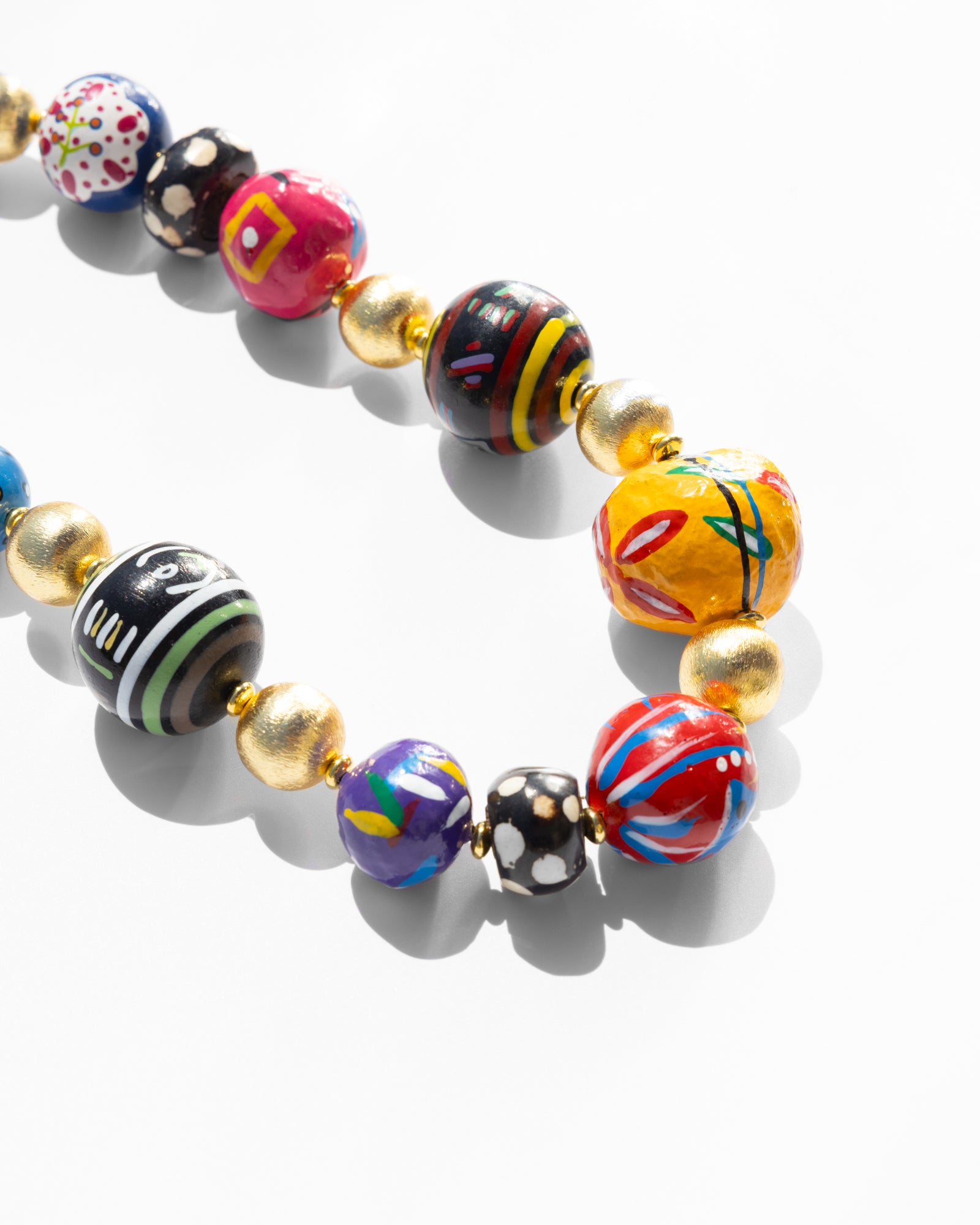 - Materials: wooden and papier-mâché beads