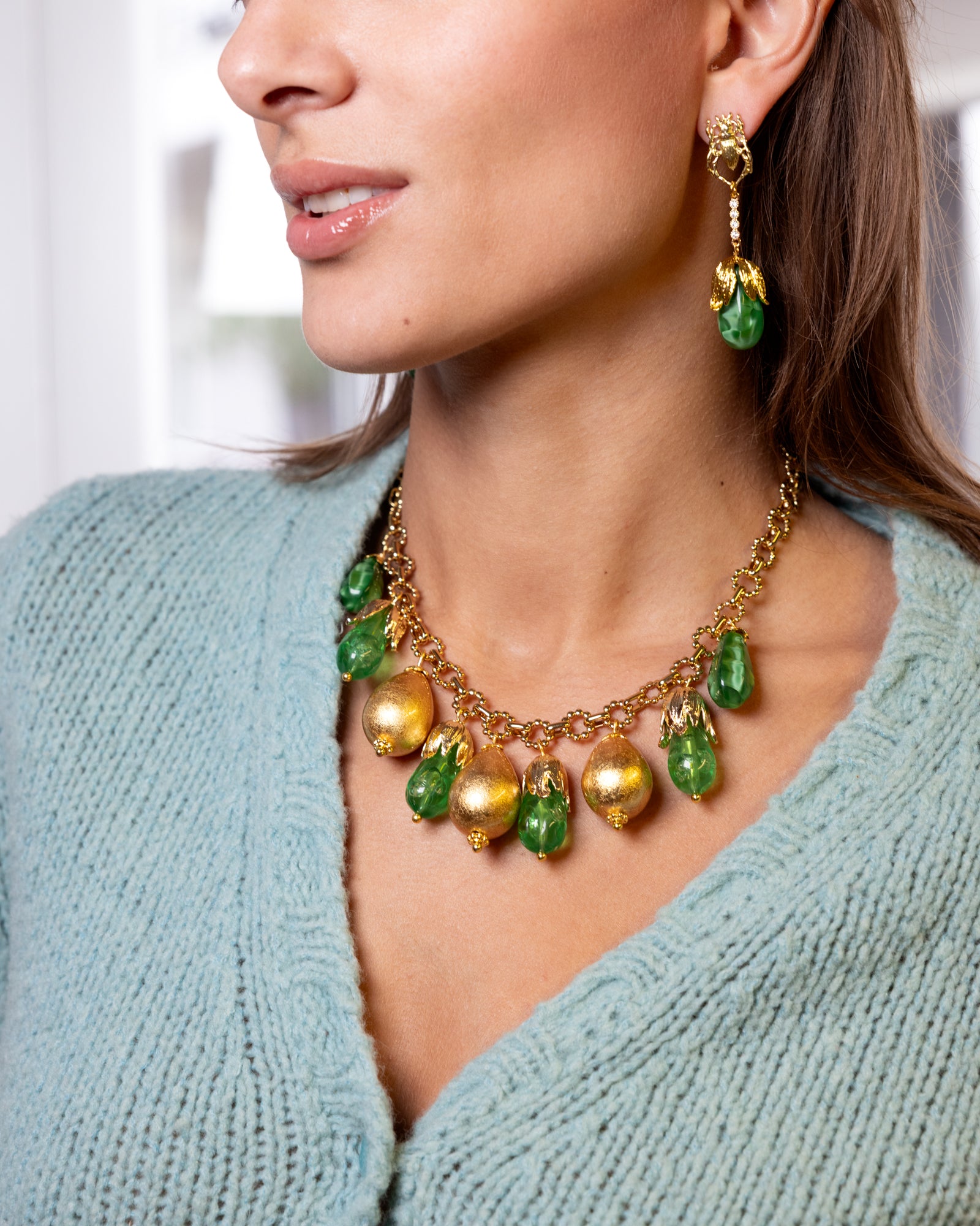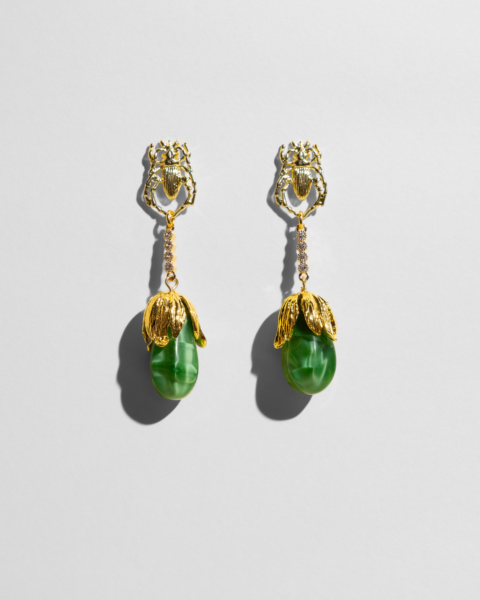 Our Noto earrings will add a vibrant hue to your look. Made of vintage resin drops and gold plated metal adorned with tiny faceted crystals, these dangles are ideal for many occasions. Plus, they make a thoughtful gift for that special someone who loves to shine!